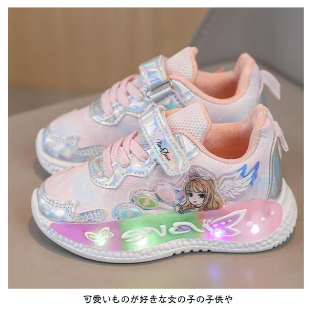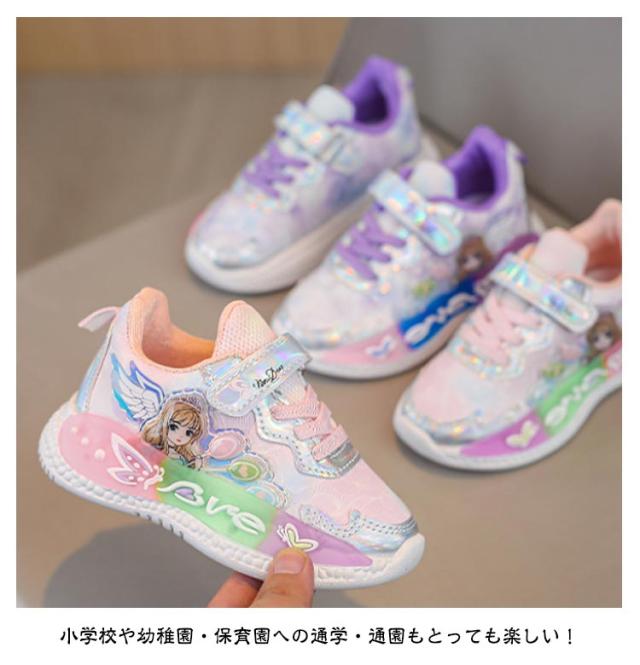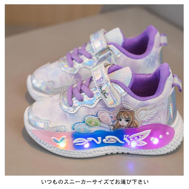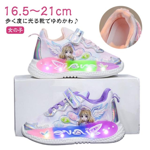 シューズ キッズシューズ パープル おしゃれ 靴 光る靴 女児 キッズ スニーカー 子供靴 光る靴 ピンク 女の子 かわいい 子供 16.5〜21cm 小学校 幼稚園 保育園 ゆめかわ かわいい スリッポン 小学生 フラッシュ 誕生日