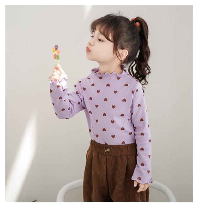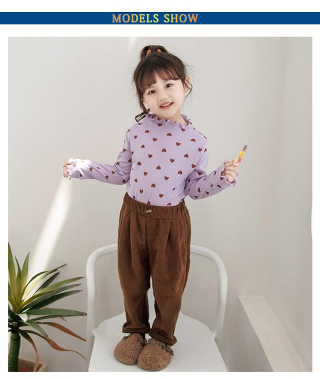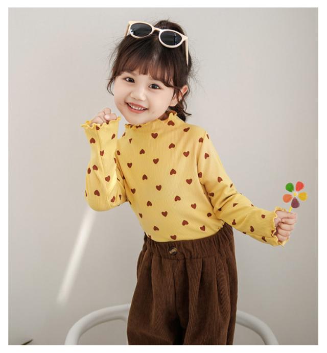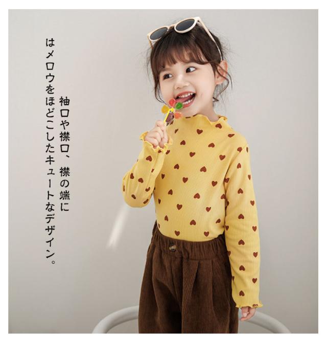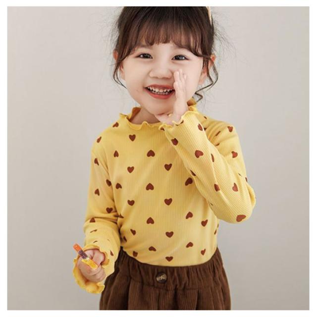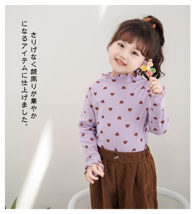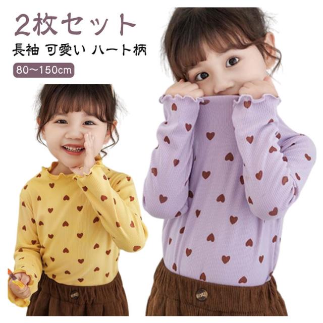 2枚セット!フリルネック トップス キッズ ベビー 子供 女の子 秋 冬 春 長袖 可愛い ハート柄 長袖tシャツ ロンt フリル フリルトップス 保育園 幼稚園 発表会 ガールズ こども 子ども キッズ服 80 90 100 110 120 130 140 150cm