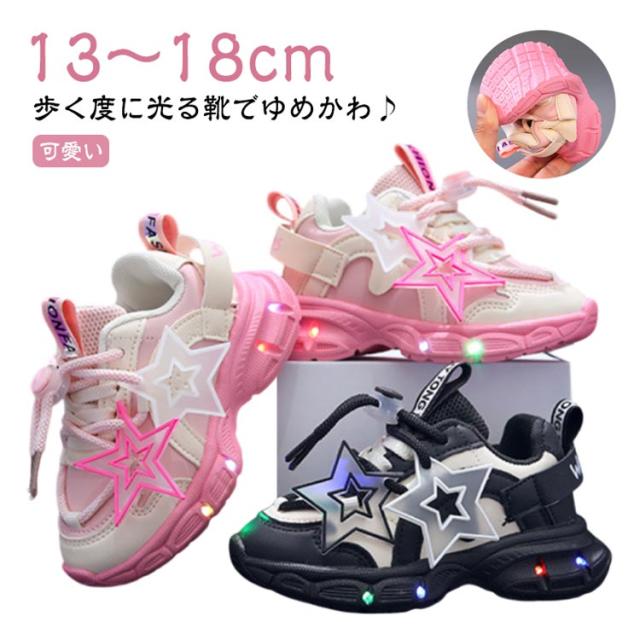 幼稚園 子供靴 キッズ ピンク 光る靴 子供 ゆめかわ ブラック スリッポン 13cm〜18cm 光る靴 保育園 小学生 フラッシュ 誕生日 プレゼント かわいい シューズ 黒 園児 ダブルスター 女の子 通園 通学 疲れにくい