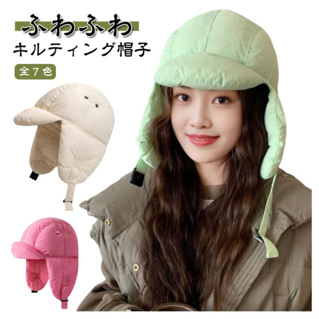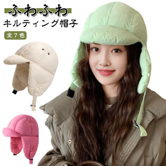 帽子 レディース 冬 キルティング帽子 耳当て ふわふわ 中綿 暖かい 軽量 防寒 キルティング ボリューム サイズ調節可 ぼうし 日除け 日よけ アウトドア キャンプ フェス レジャー 登山 外遊び 旅行 自転車 折りたたみ スノーボード 送料無料