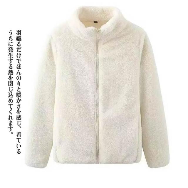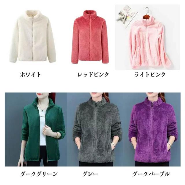 フリースジャケット レディース ボア フリース ジャケット 裏ボア 厚手 暖かい 長袖 ブルゾン アウター ボアコート ミドル丈 ショート丈 秋冬 ジップアップ 立ち襟 スタンドカラー 防寒 無地 軽量 マイクロフリース 毛布 部屋着