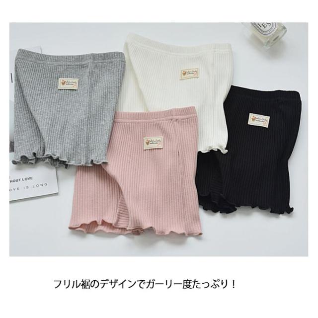 | 制服のスカートの下に 1分丈 スパッツ 窮屈さやムレはなく、とっても快適な履き心地です。 手触りも良く、丈夫さもあります。 フリル裾のデザインでガーリー度たっぷり! 凹凸のあるリブ編みで、とにかくよく伸び、子供が大きくなったら買い替えが気になる方におすすめです。 締めつけ感がなく、身に着けていることを忘れそうなほどやさしい履き心地。 | |