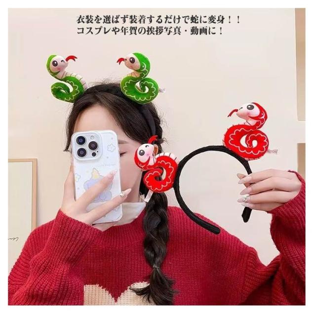 | 2025年の干支ヘビをモチーフにしたカチューシャ。【2個セット】 衣装を選ばず装着するだけで蛇に変身!!映えるアイテムです! フリーサイズ(お子様から大人までご使用頂けます)。 コスプレや年賀の挨拶写真・動画に! | |