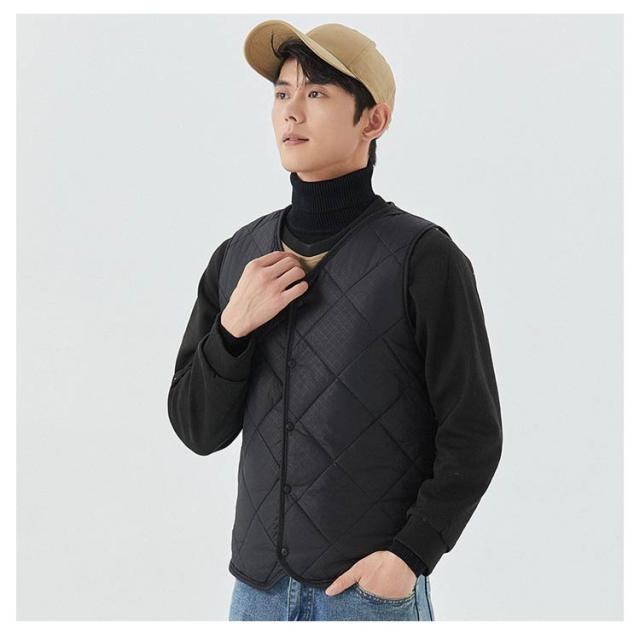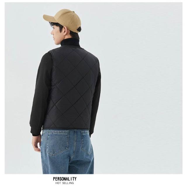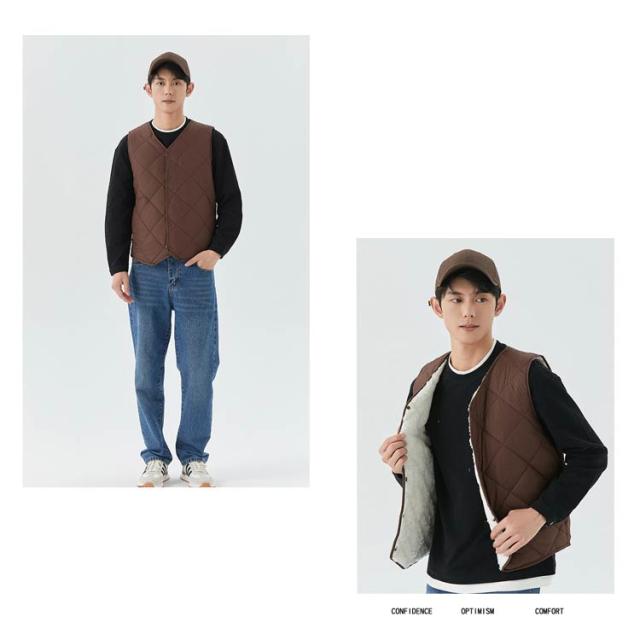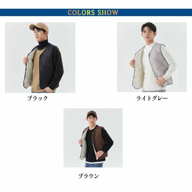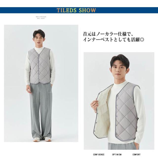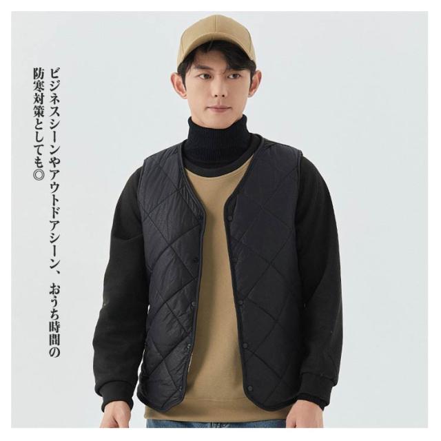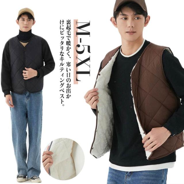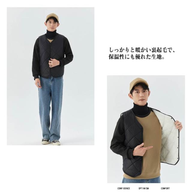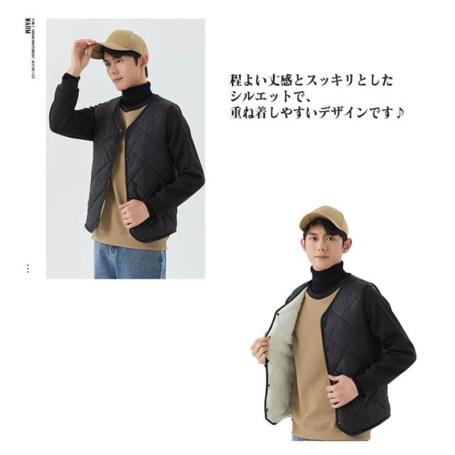 裏起毛 トップス 冬 キルト 中綿ベスト 裏ボア アウター ノーカラー 秋 スーツインナー メンズ 防寒 インナーベス 羽織り 前開き ルームウェア 保温 部屋着 あったか 暖かい 防寒着 ビジネス 通勤 通学 出張 裏起毛 冬