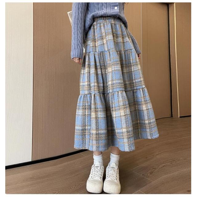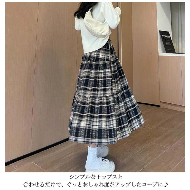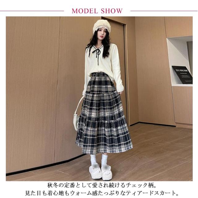 チェック柄 チェックスカート ティアード フレア ロングスカート スカート ティアードカート 長め チェックスカート 起毛素材 マキシスカート スカート ロンスカ Aライン ウエストゴム 体型カバー きれいめ 秋 冬 レッド ブルー ネイビー