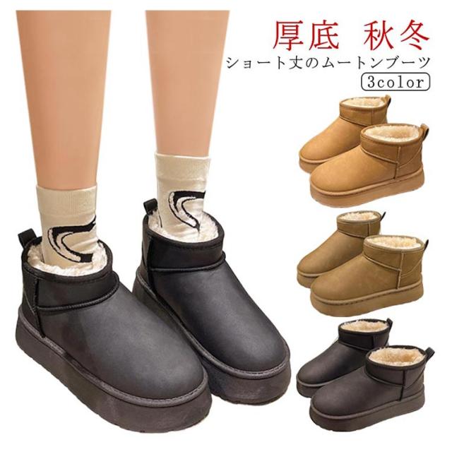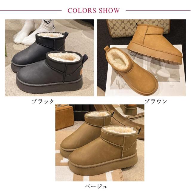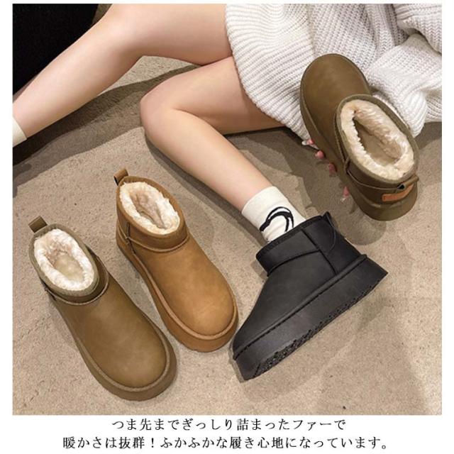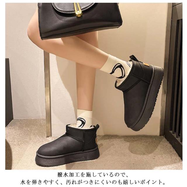 撥水 ショートブーツ ムートンブーツ 厚底 靴 レディース 防水 ローヒール 雪 防寒 プラットフォーム ぺたんこ 軽量 ムートンブーツ 撥水 ショート丈 ボア ムートンブーツ 痛くない 雨 疲れない 歩きやすい 防寒ブーツ 暖かい あたたかい ブラック ブラウン