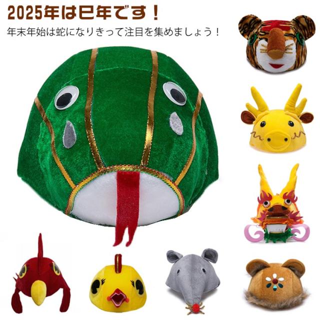 巳年 干支 被り物 蛇 ヘビ 帽子 コスチューム キャップ 被り物 着ぐるみ帽子 巳年 動物 かわいい 蛇の帽子 着ぐるみ 子供 面白い ヘビ ぬいぐるみ 2025年 かぶりもの 十二支 新年 パーティー 撮影 年賀状 アニマルハット コスプレ 仮装
