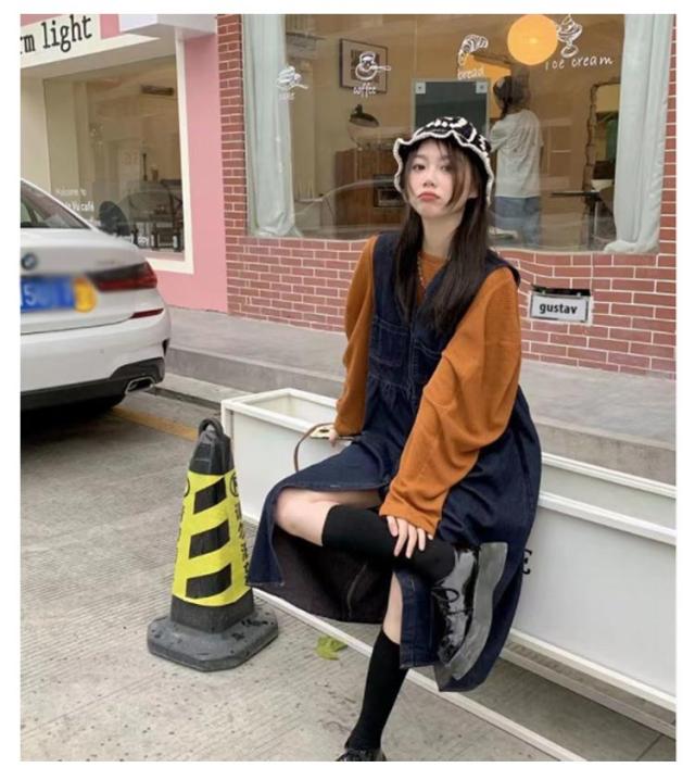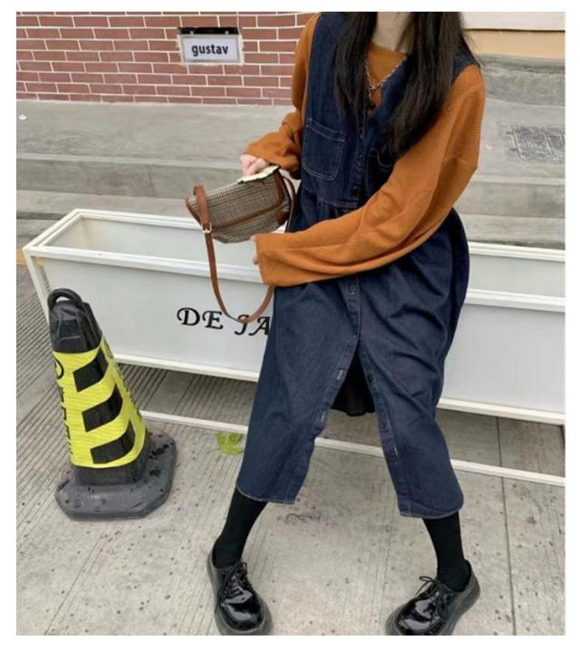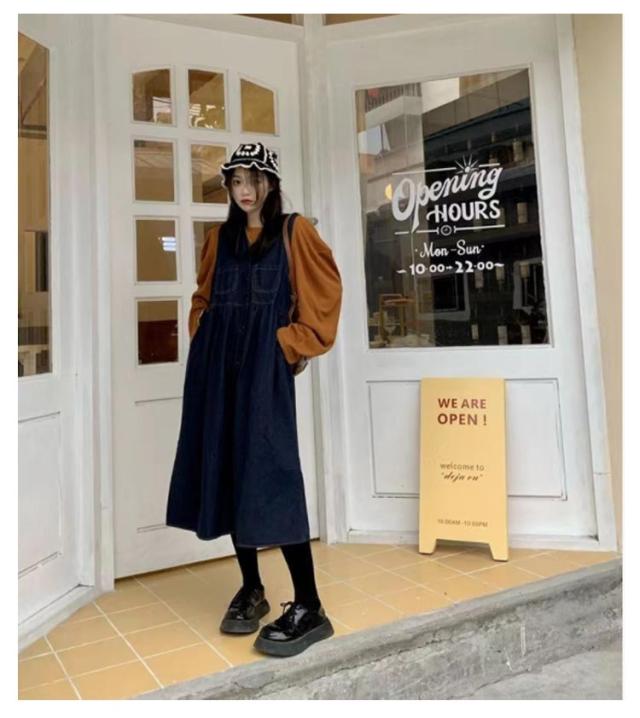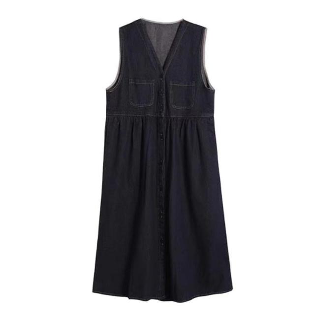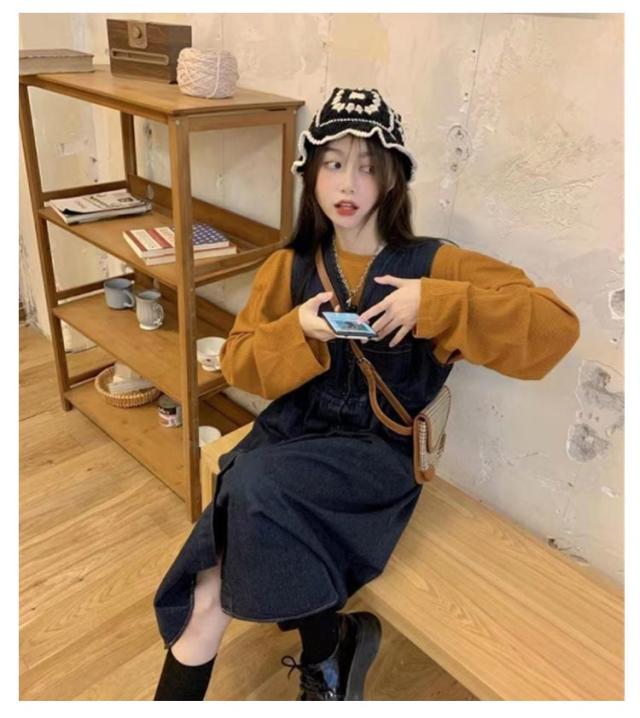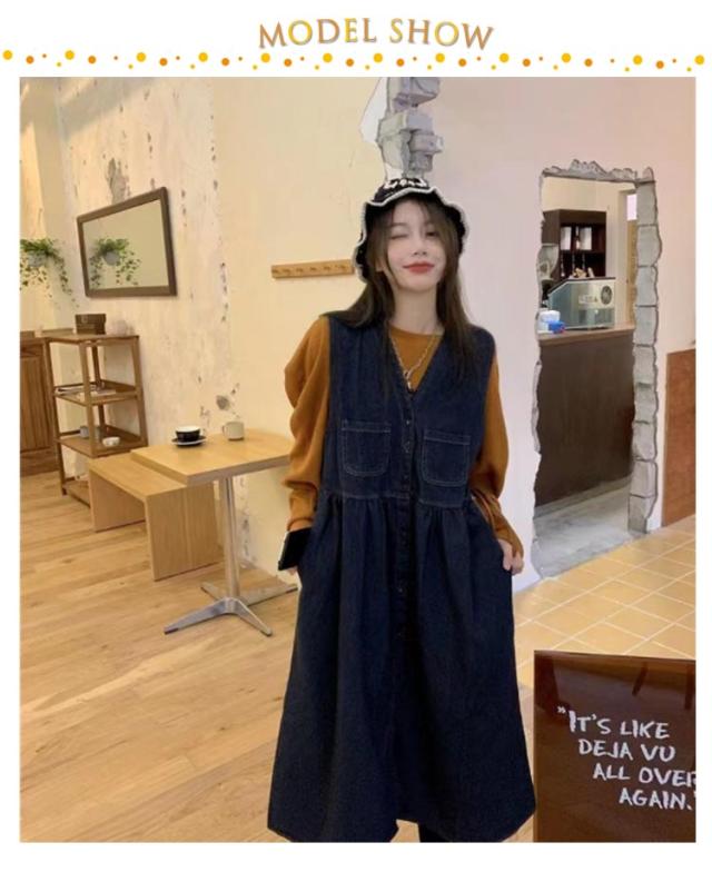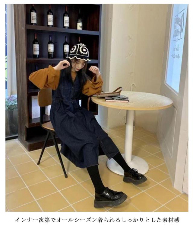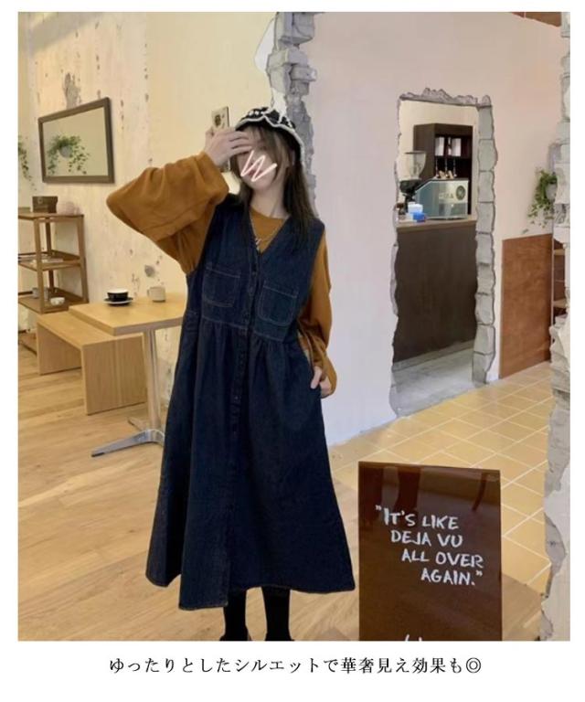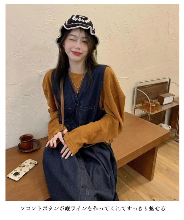 デニム ジャンパースカート ロング レディース 大人 レイヤード 秋 ゆったり 冬 デニムワンピース ジャンパースカート レトロ 春 体型カバー ジャンスカ ヴィンテージ 厚手 Vネック カジュアル ノースリーブ 重ね着 コーデ オールインワン おしゃれ 韓国風