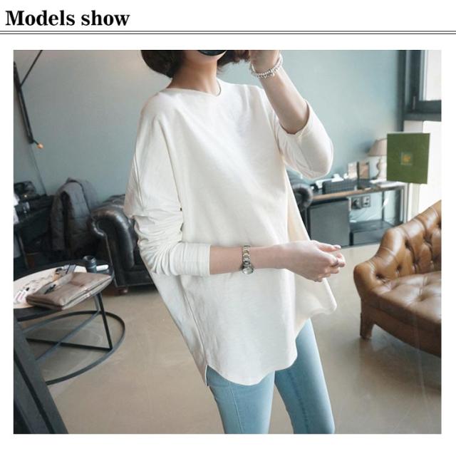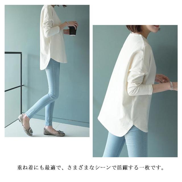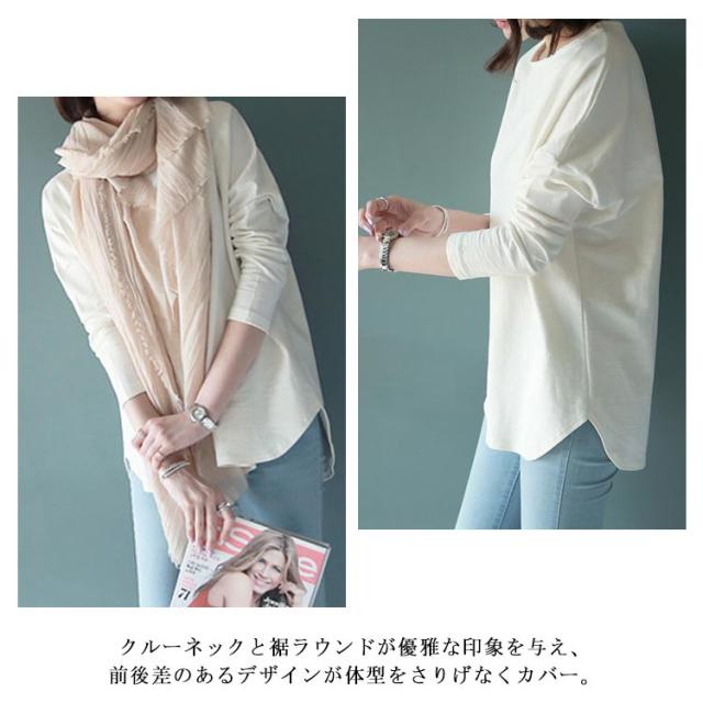 レディース カットソー 長袖 サイドスリット 重ね着 ロングTシャツ トップス ロンT ラウンドネック tシャツ スウェット サイドスリット 長袖tシャツ クルーネック プルオーバー レイヤード 前後差 体型カバー 綿 コットン インナー 無地 カジュアル ホワイト 白 黒