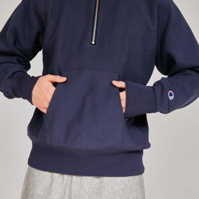 REVERSE WEAVE HALF ZIP SWEATSHIRT チャンピオンを代表する製法の「REVERSE WEAVE(リバースウィーブ)」を採用したアイテム。