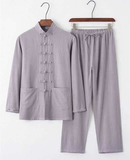 セットアップ 上下セット 長袖 綿麻 カジュアル ルームウェア チャイナ風 衣装 春 秋 男性用 中華風 父の日 グレー