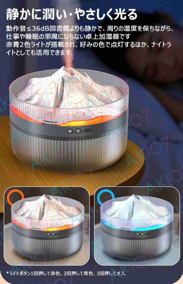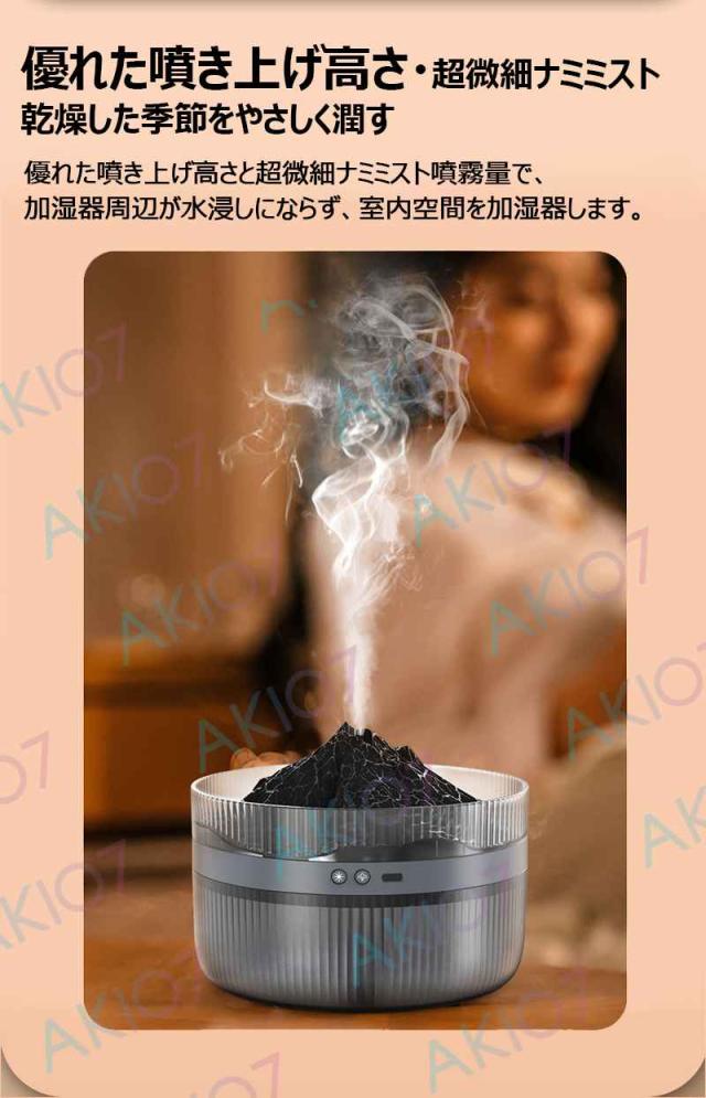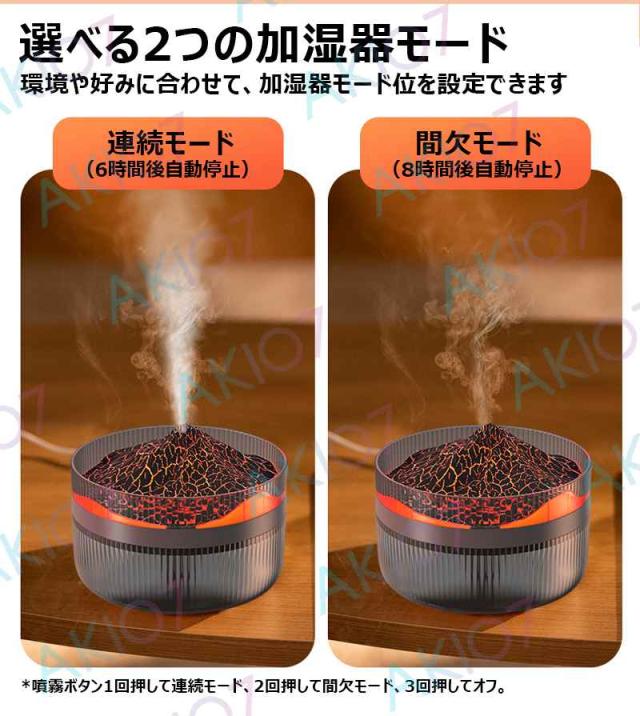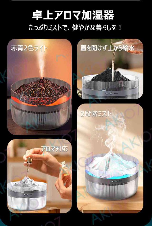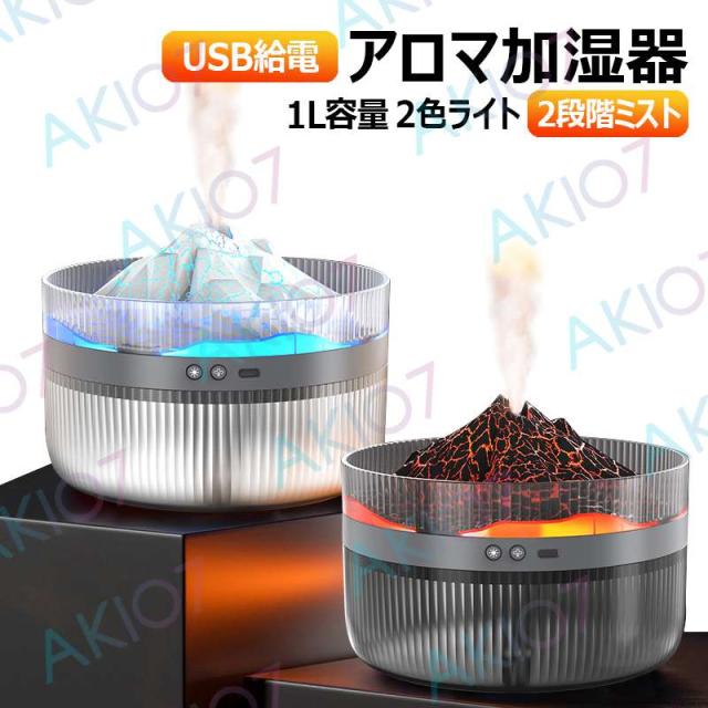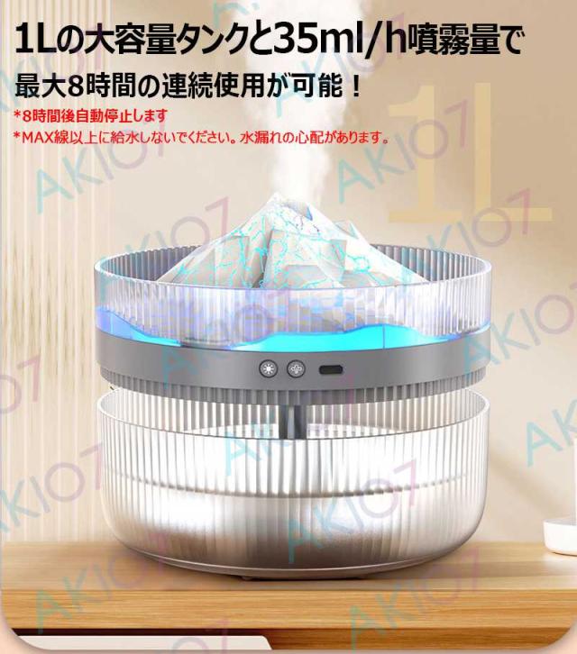 【火山デザイン&アロマ対応】1L 加湿器 卓上 小型 USB給電式 PSE済み 2種類LEDライト ナイトライト機能 超微細ナミミスト 乾燥/花粉症対策 2つの噴霧パターン 静音運転 バッテリーなし 上から給水 日本語説明書付き 省エネ 車 寝室