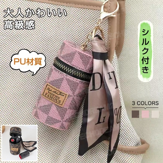 小さな水筒の形が、とても立体的に見せています。手触りの上質なシルクを使用して、手触りも抜群です。おしゃれな女性におすすめです。