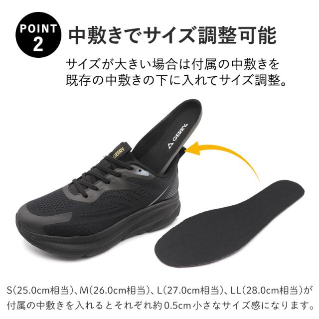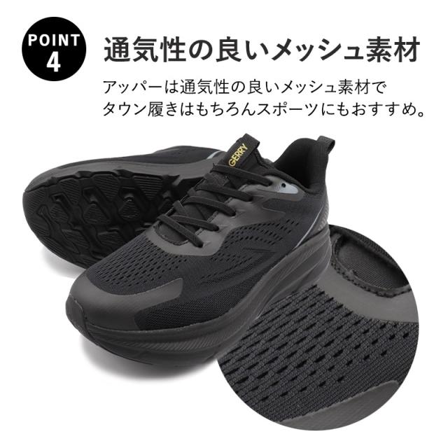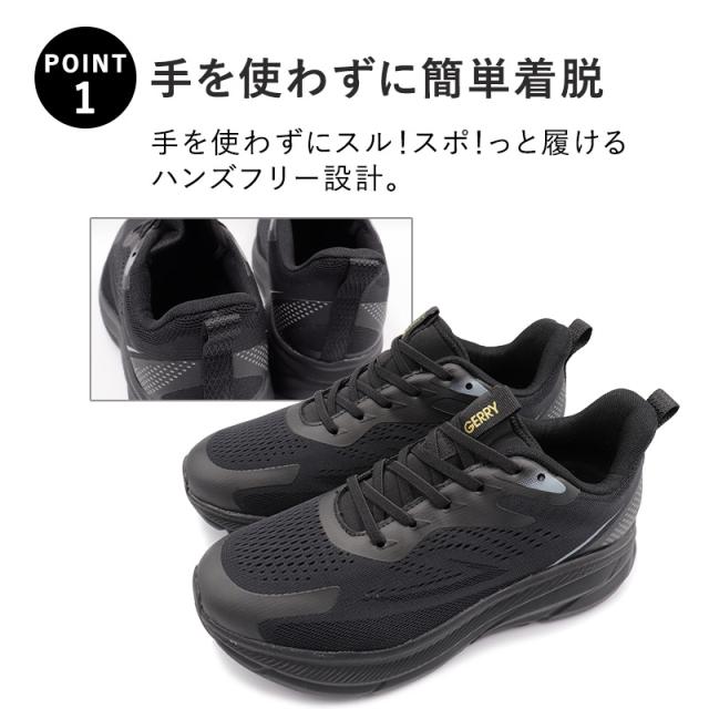 スニーカー メンズ 軽量 GERRY GR6583 歩きやすい 厚底 おしゃれ スリッポン 黒 疲れない 軽い ウォーキング メッシュ