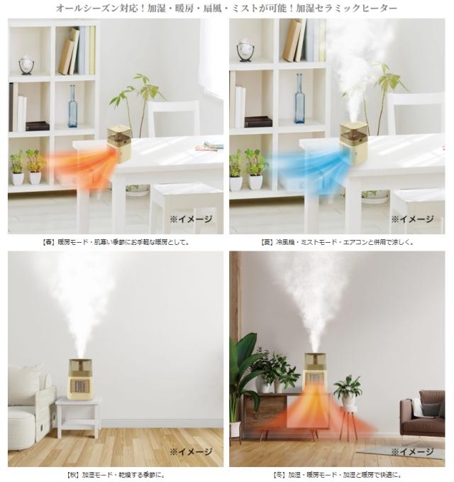 オールシーズン対応!加湿・暖房・扇風・ミストが可能!加湿セラミックヒーター