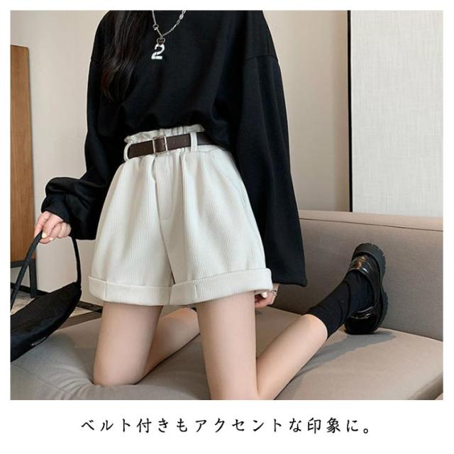 ベルト付き!秋冬 ベルト付き!秋冬 送料無料 ショートパンツ コーデュロイ レディース ハーフパンツ 膝上丈 ハイウエスト 短パン 膝上 ボトムス Aライン ゆったり 美脚