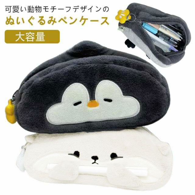 おもしろい もこもこ ペンケース ペンケース 筆箱 ぬいぐるみ 小学生 顔 軽量 ペン収納 筆入れ コスメポーチ 大容量 小物入れ 中学生 高校生 収納ポーチ ペンギン 文房具 動物 かわいい おしゃれ 個性的 入学祝い プレゼント ギフト