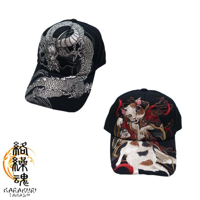 絡繰魂 カラクリダマシイ 和柄 キャップ 帽子 CAP 総刺繍 メンズ 猫又 龍 244896 送料無料