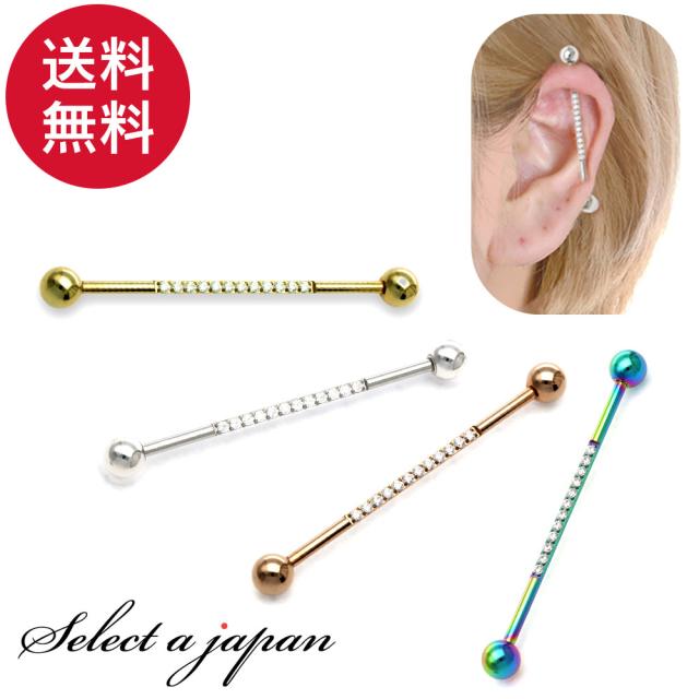 ボディピアス 14G インダストリアル メガストレートバーベル ジュエル 軟骨 ピアス ボディピ サージカルステンレス 14ゲージ つけっぱなし トラガス 軟骨ピアス ボディーピアス 耳たぶ 舌ピ へそピアス インダストリアル ファーストピアス セカンドピアス ボディーピアス 片