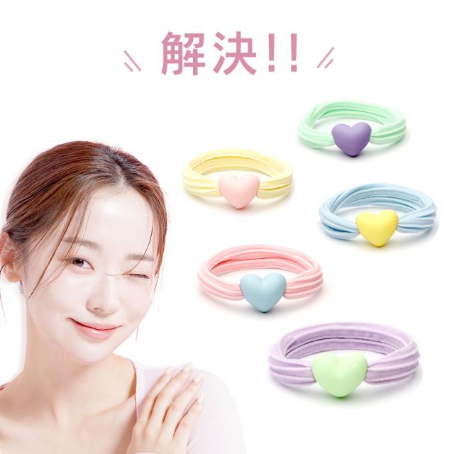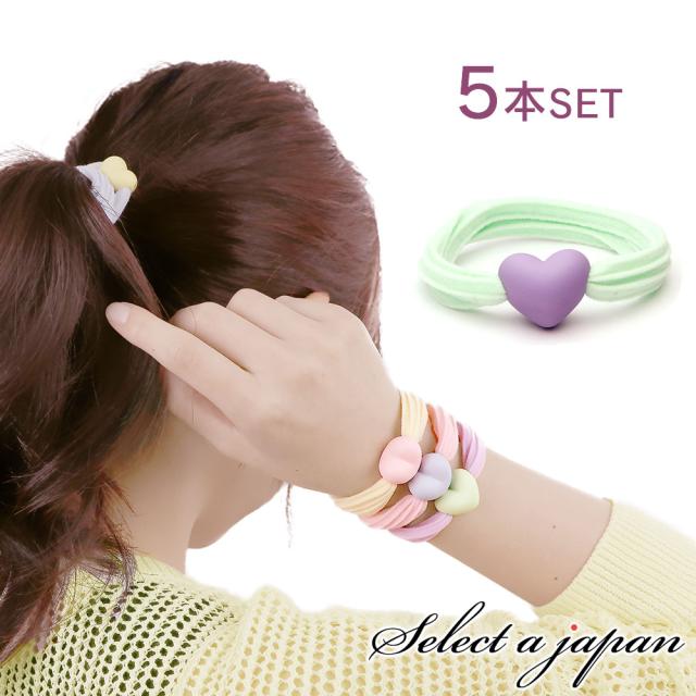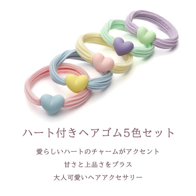『5色セット』ヘアゴム ハート付 おしゃれ 大人 シンプル レディース 可愛い ヘアーゴム ゴム かわいい お団子 まとめ髪 ポニーテール 高見え キュート 華やか 女性用 髪ゴム ヘアアレンジ