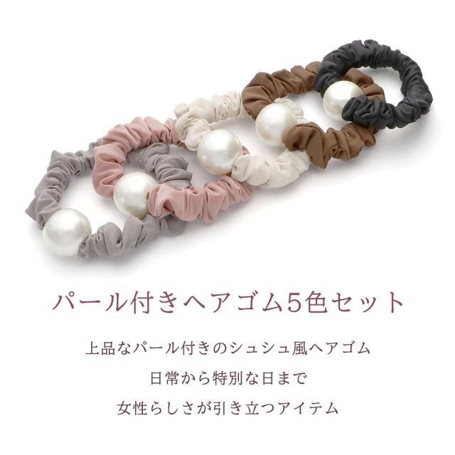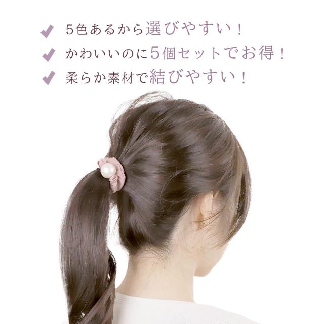 『5色セット』ヘアゴム パール付 おしゃれ 大人 シンプル レディース 可愛い ヘアーゴム ゴム かわいい お団子 まとめ髪 ポニーテール 高見え キュート 華やか 女性用 髪ゴム ヘアアレンジ