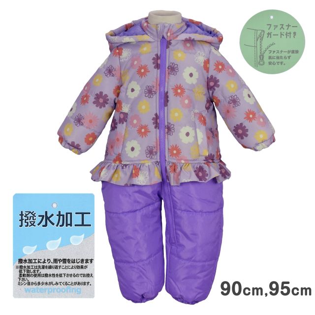 ジャンプスーツ 綿入り 花柄 撥水加工 ベビー キッズ 子供 女の子 カバーオールラベンダー
