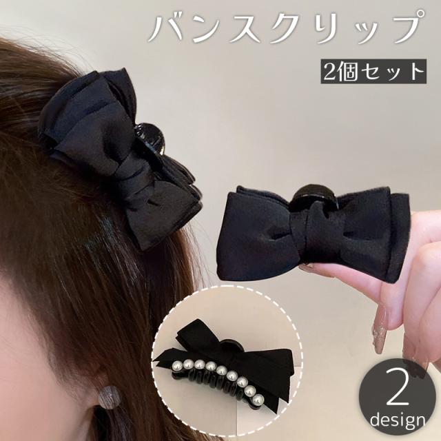 バンスクリップ ヘアクリップ 2個セット レディース 女性 ヘアアクセサリー 髪飾り 髪留め リボン フェイクパール ゴスロリ