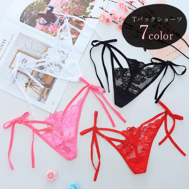 Tバックショーツ タンガショーツ 紐パン パンツ レディース 女性 下着 インナー サイドリボン レース 透け シースルー アシ