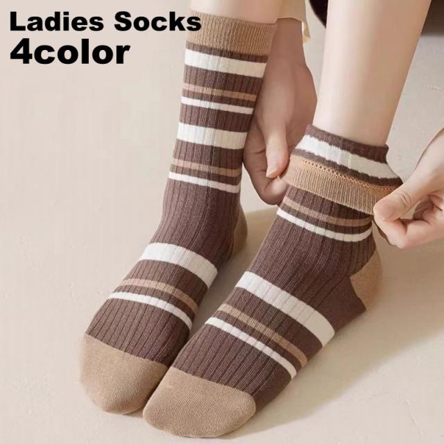 クルーソックス レディース 女性 靴下 くつ下 ボーダー しましま クルー丈 おしゃれ かわいい カジュアル 定番 ベーシック