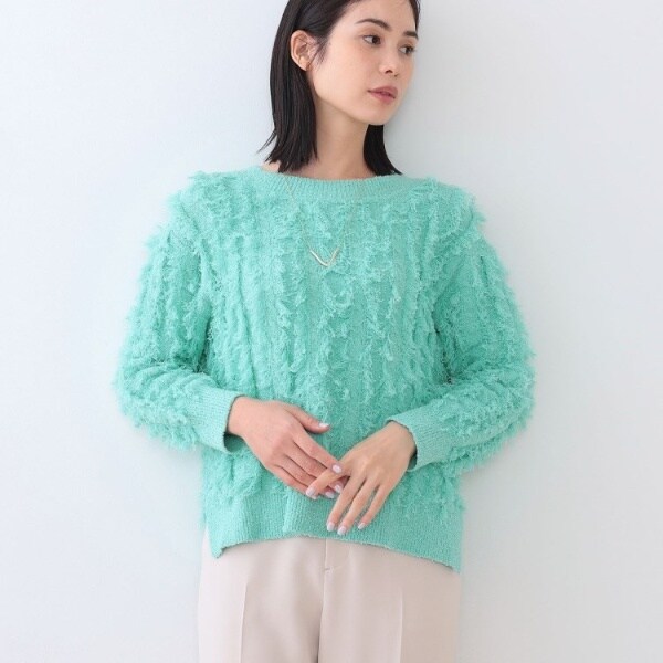 表情豊かなフリンジジャカードが目を惹くニットプルオーバー。