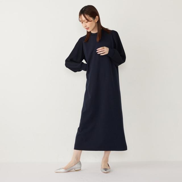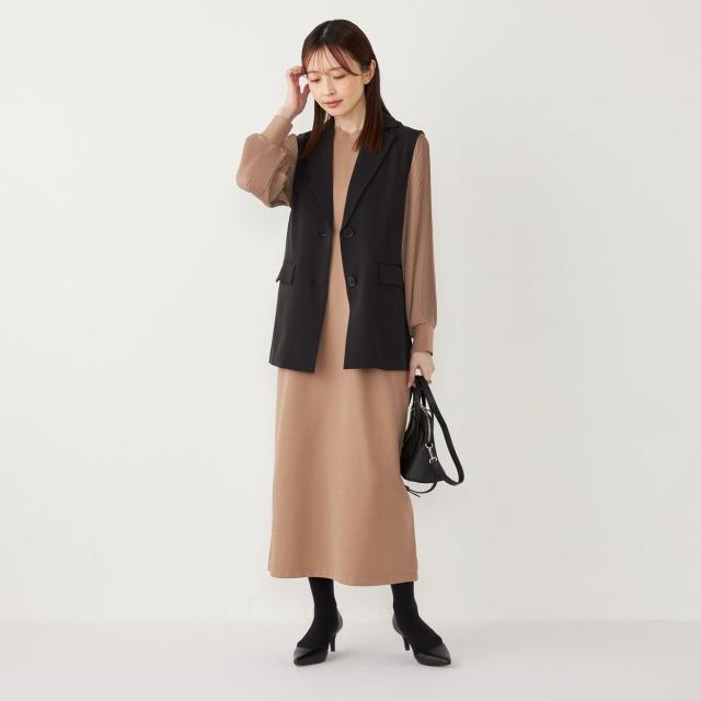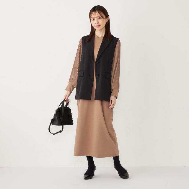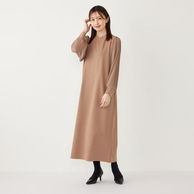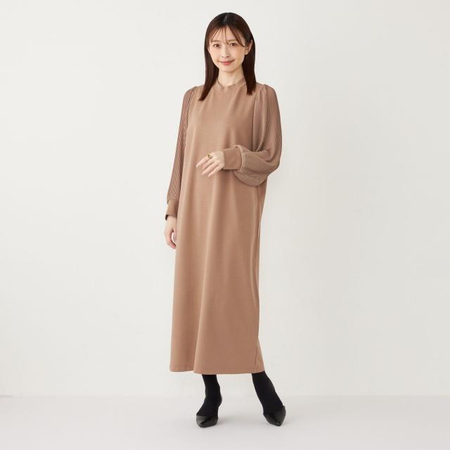 プリーツスリーブが目を惹く上品な印象のワンピース。
