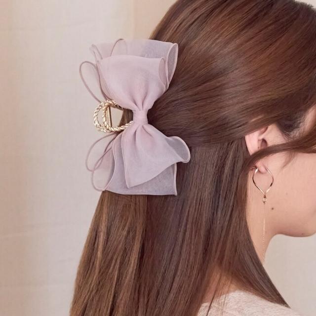 【オーガンジー素材を贅沢に使用した、大きめのリボンバンスクリップ】