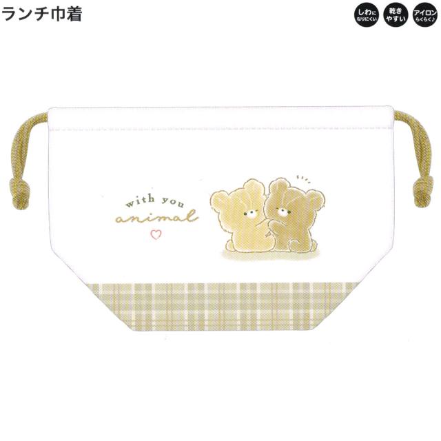 メール便 OK 巾着 女の子 向け ランチ巾着 with you animal クマ しわになりにくい 乾きやすい カミオジャパン おしゃれ で かわいい 文房具