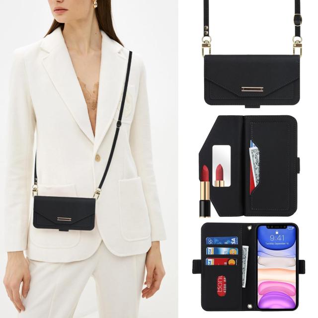 ◆商品名:【Hamany】 iphone11ケース ショルダー 鏡 アイフォン11 ケース 手帳型 ストラップ付き ミラー アイホン11ケース カード収納 財布 クロス