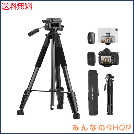 カメラ三脚 K&F CONCEPT190cm カメラ 三脚 スマホ三脚 軽量三脚 コンパクト トラベル三脚 5段階伸縮 360°回転 耐荷重 4キロ ポータブル5