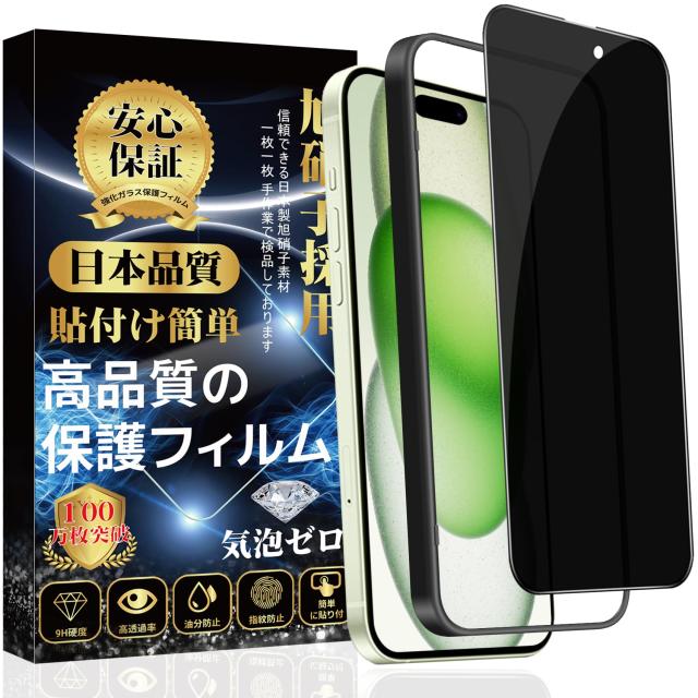 覗き見防止 i Phone15 ガラスフィルム i Phone 15 フィルム のぞき見防止 全面保護 旭硝子素材製 【ガイド枠付き?1枚入り】硬度9H 飛散防