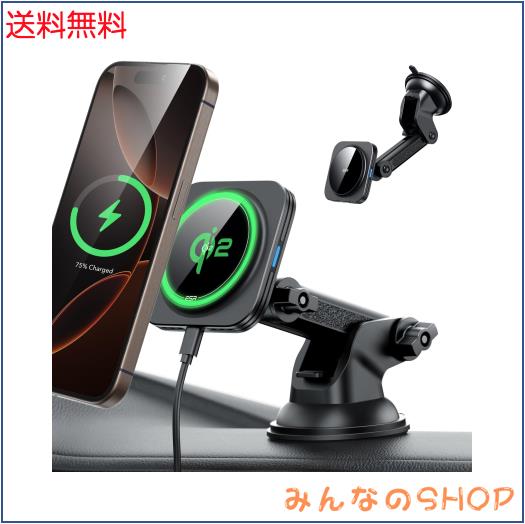 ESR Qi2 15W充電 magsafe 車載 スマホホルダー 車 Qi2認定magsafe充電器 ダッシュボード/風防ガラス磁気ワイヤレス車載充電器 iPhone16/1