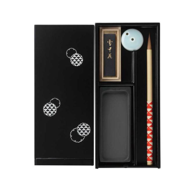 書道具、習字セット、携帯用、コンパクト、写経、手紙、文房四宝、筆墨硯紙、和風、和柄、伝統柄、硯箱セット、文房具、ギフト、プレゼント、贈答用、父の日、母の日、漆塗り、ブラック、細字書道