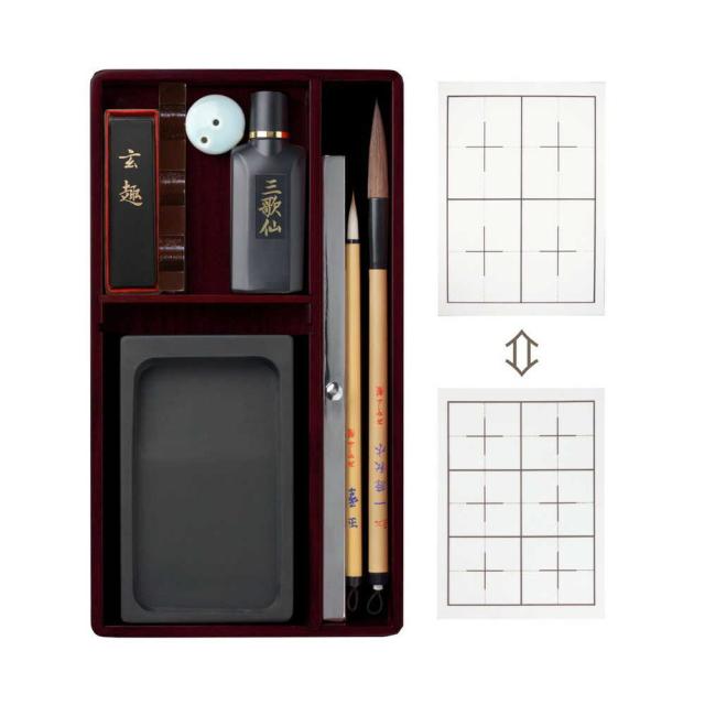 書道具、習字セット、プレゼント、ギフト、贈答用、化粧箱入、母の日、父の日、硯箱、文房四宝、筆墨硯紙、越前漆器、硯箱セット、漆塗り、無地、シンプル、フルセット、男性、女性、