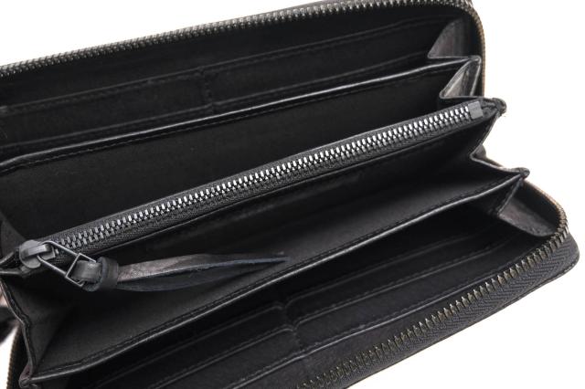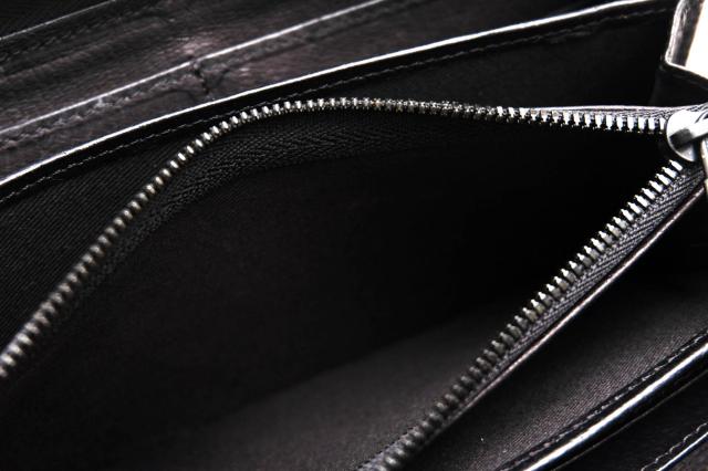 希少で上質なシャークレザーを用いたラウンドファスナー長財布。独特な凹凸が無骨な質感でありながらも、高級感のある逸品です。三辺をファスナーで囲んだラウンドファスナー型なので、お札やカードポケット、小銭入れの収納スペースが充実しており、ファスナーを開いたときに視認性に優れているのも特徴です。またファスナーで守られているので、大切なお金やカード類を落としてしまうのを防止し、安全性の高いデザインです。