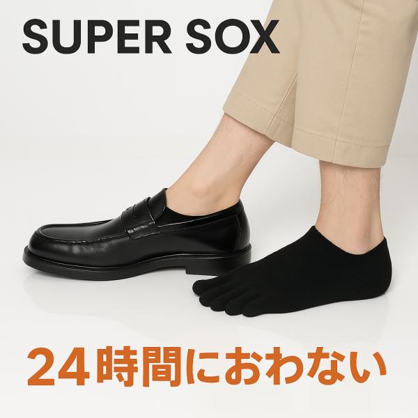 スーパーソックス SUPER SOX 23-25cm 24時間におわない ソックス 靴下 五本指 クルー丈 3足組 ムレない におわない メンズ