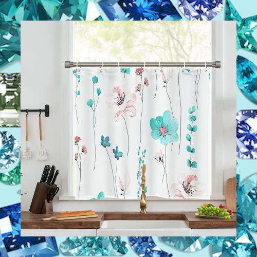 ◆商品名:AooHome お風呂小窓カーテン 浴室窓カーテン 丈80 cm x 幅100 cm (1枚組) 防水防カビ 防水防カビ 目隠し 断熱 シャワーカーテン ブルー・flower