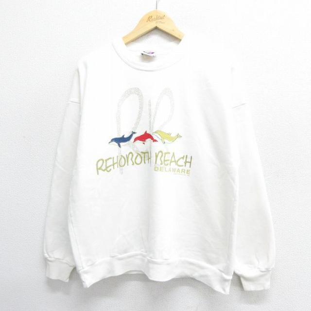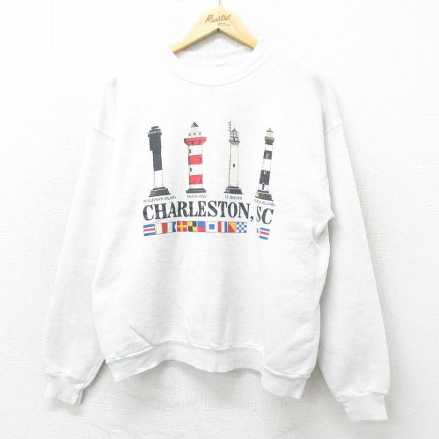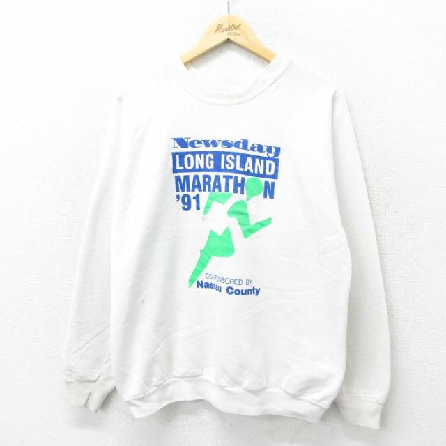 【商品名】 L★古着 TULTEX 長袖 スウェット メンズ 90年代 90s ハート クルーネック USA製 白