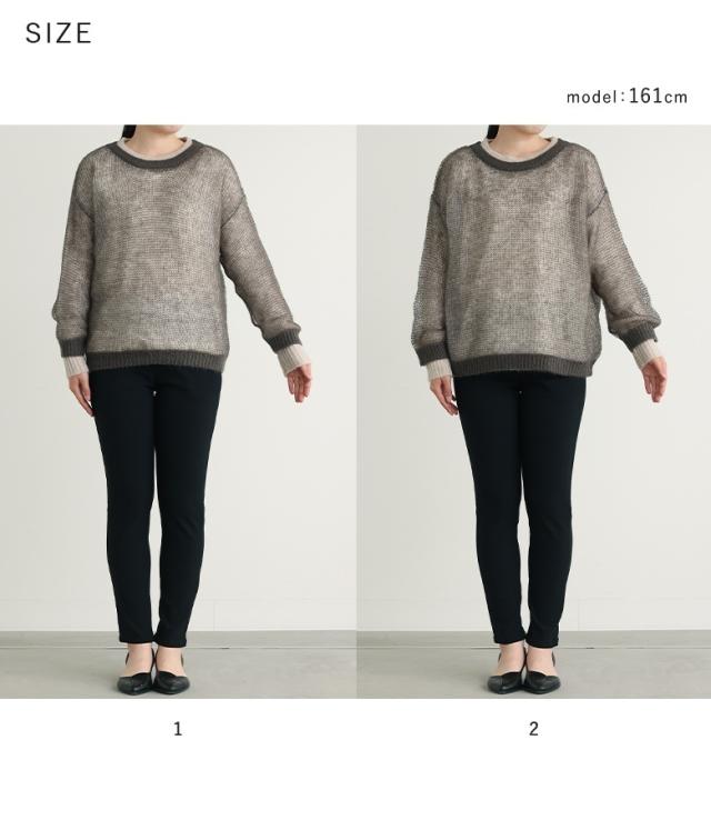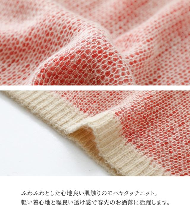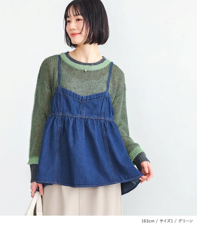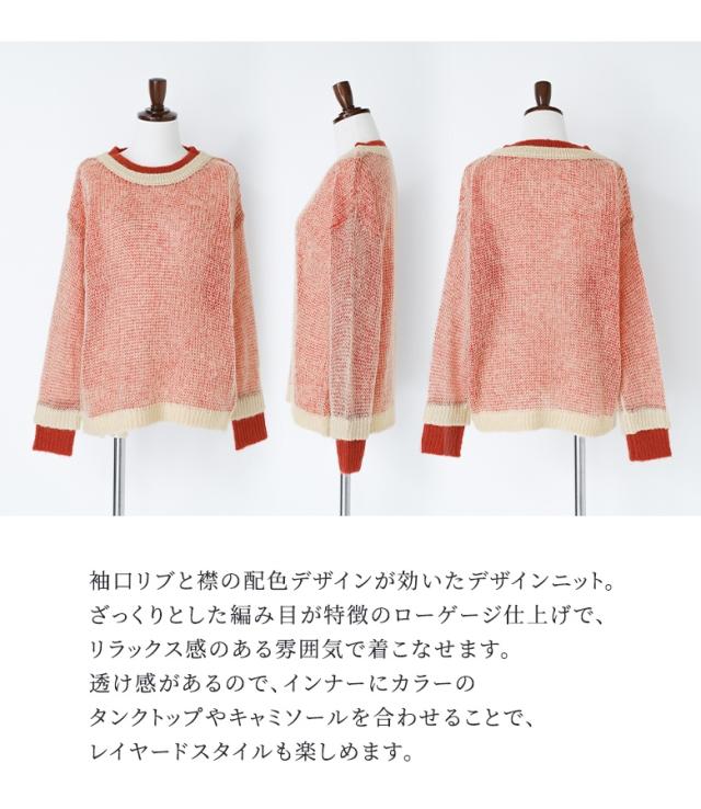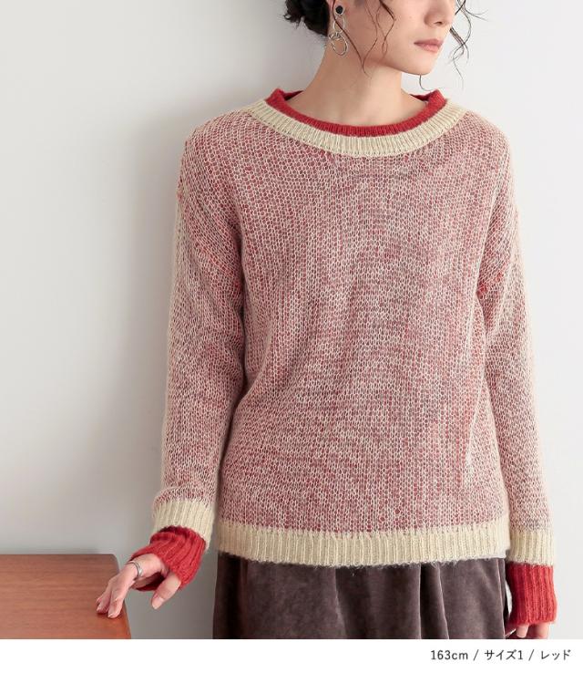 『配色レイヤードモヘヤタッチニット』※メール便可※【10】[ニット レディース トップス セーター 長袖 レイヤード風 配色 モヘヤタッチ ローゲージ クルーネック プルオーバー]