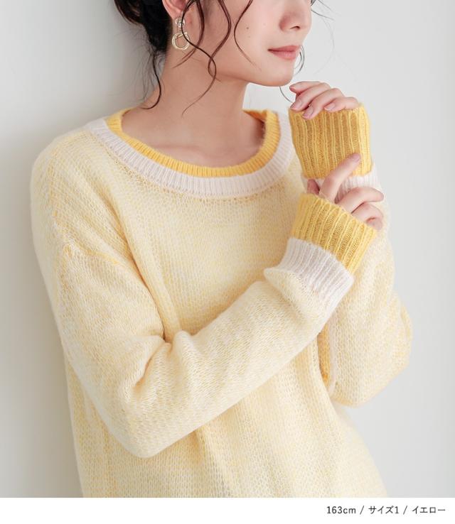 ニット レディース トップス セーター 長袖 レイヤード風 配色 モヘヤタッチ ローゲージ クルーネック プルオーバー 【TP】 モヘヤタッチニット ざっくりニット n'OrLABEL ノア—ルレーベル 大人女子 大人可愛い お洒落可愛い 大人カジュアル ベーシック ニュアンス ラフ エフォートレス オフィスカジュアル 上品 きれいめ ナチュラル ショート丈 ミディ丈 ミドル丈 無地 レイヤード 重ね着 おうちで洗える 春 秋 冬 カジュアル シンプル モード キレカジ フェミニン ゆったり ゆる Sサイズ Mサイズ Lサイズ LLサイズ 3Lサイズ XLサイズ ぽっちゃり 体型カバー 大きいサイズ プラスサイズ 10代 20代 30代 40代 50代 60代 女子会 オフィス 通勤 通学 お買い物 お出掛け 旅行 リゾート レジャー おしゃれ お洒落 トレンド 流行 osharewalker オシャレウォーカー おしゃれうぉーかー イエロー 黄色 レッド 赤 グリーン 緑 グレー 灰色 バイカラー ビビッド 差し色[ID]11tn00g[n'OrLABEL配色レイヤードモヘヤタッチニット]お