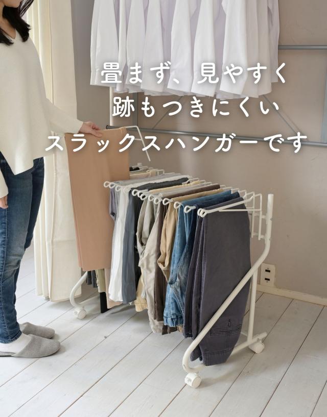 スラックスハンガー 10本掛け パンツハンガー クローゼット収納 押入れ収納 ズボンハンガー パンツラック 収納 キャスター付き ウォークイン クローゼット スリム 大容量 YAMAZEN 山善 【送料無料】