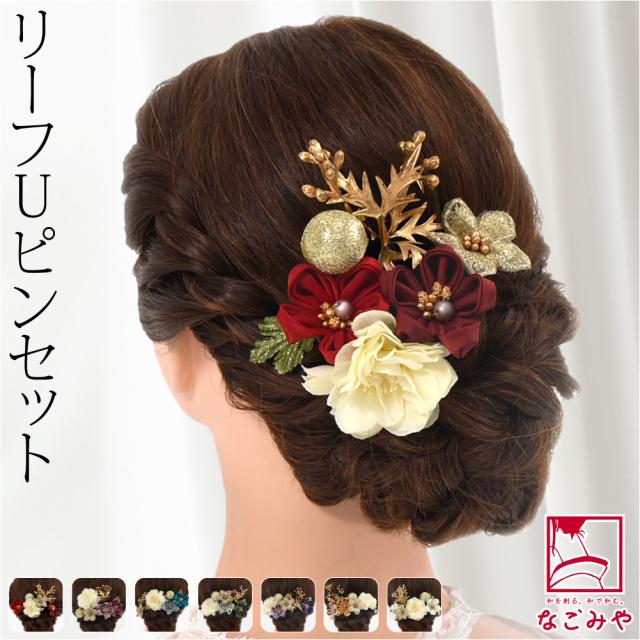 和装 髪飾り 成人式 振袖 通年用 日本製 フラワー くすみ つまみ ピン 6点セット 花 Uピン 付け足し 礼装 おしゃれ 大人 レディース 女性10024341