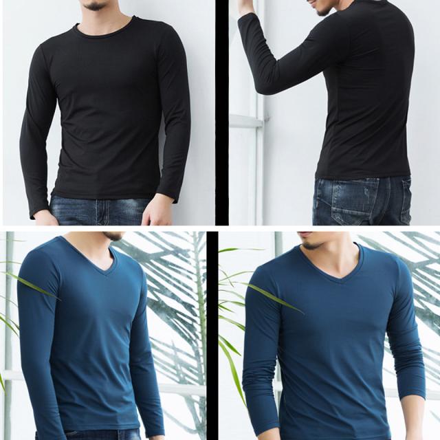 冬でもポカポカ暖か。Vネックとクルーネックの2タイプから選べるロングTシャツ