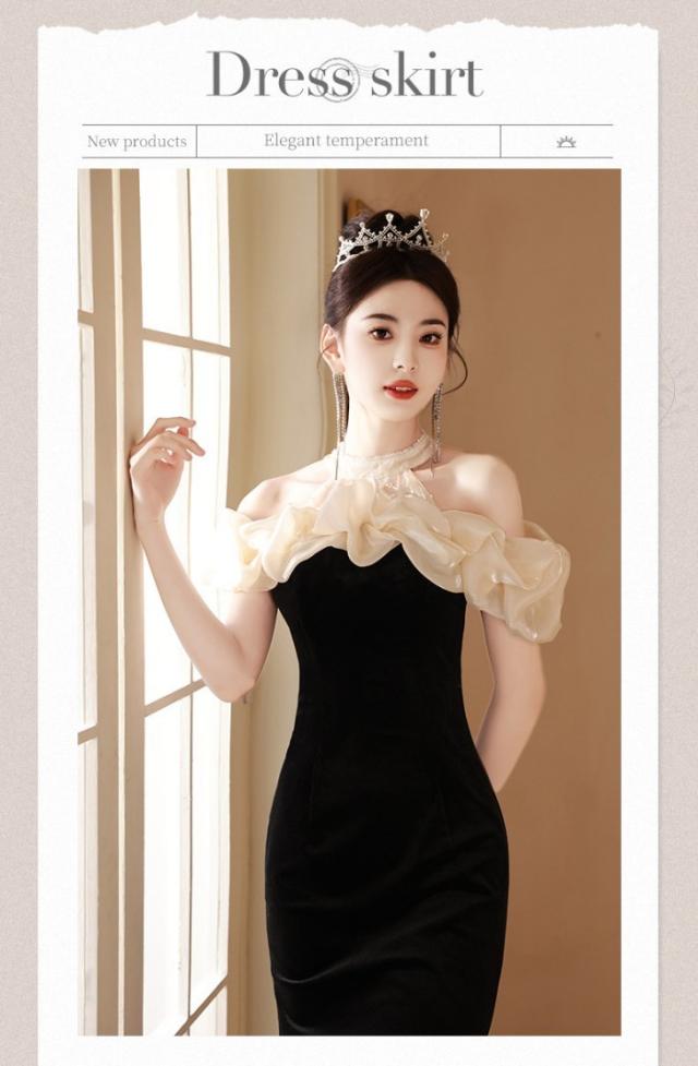 マーメイドドレス パーティードレス マーメイドライン 秋冬 カクテルドレス ブラック 黒 ロングドレス スリム体型 ホルターネック オフショルダー 結婚式 母親 発表会 演奏会 ドレス ドレス フォーマル 小さいサイズ 大きいサイズ バックファスナー 女子会 da246x1cyh5 da246x1