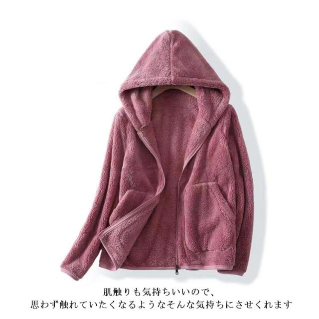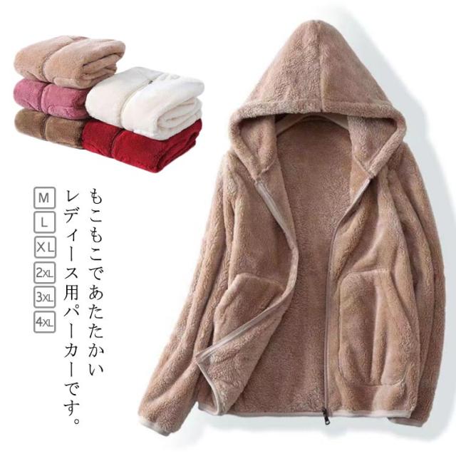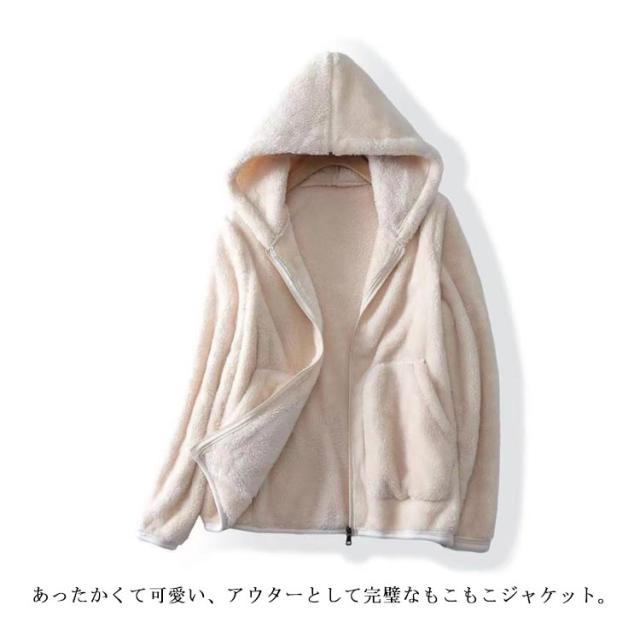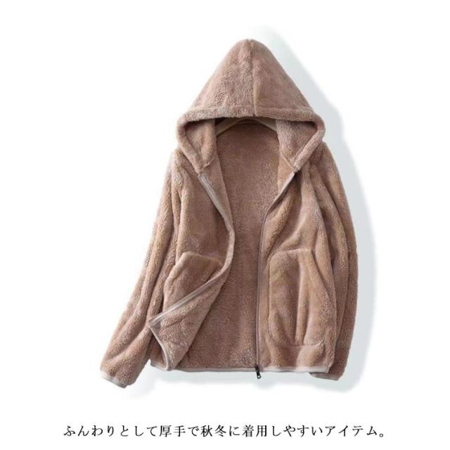 フリースジャケット もこもこ ボアジャケット 送料無料 ボアパーカー パーカー フリース ボア ジップアップ 長袖 フード付き アウター 上着 モコモコ レディース シンプル 無地 カジュアル 防寒 暖かい 秋 冬